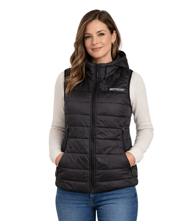 Perfekt für einen Spaziergang im Freien: Die wattierte Weste von BERTSCHAT®. Die Weste ist serienmäßig mit zwei leistungsstarken Powerbanks ausgestattet, die die zehn Heizzonen mit Energie versorgen. Dadurch wird der gesamte Oberkörper erwärmt.