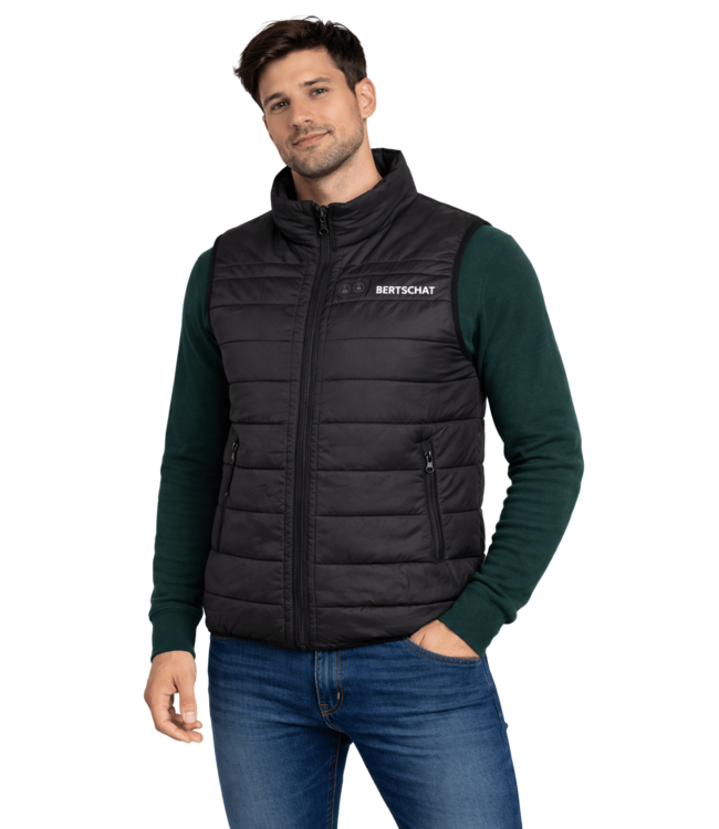 Perfekt für einen Spaziergang im Freien: Die wattierte Weste von BERTSCHAT®. Die Weste ist serienmäßig mit zwei leistungsstarken Powerbanks ausgestattet, die die 10 Heizzonen mit Energie versorgen. Dadurch wird der gesamte Oberkörper erwärmt.